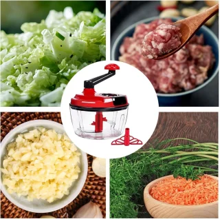 Maak snel en moeiteloos kleine porties fijn met deze compacte handmatige hakmolen. Dankzij het slimme draaimechanisme hak je groenten, kruiden, noten en zelfs kleine stukjes vlees in een handomdraai — zonder stroom, stil en altijd gebruiksklaar. Ideaal voor snelle maaltijdvoorbereiding, sauzen, dressings en fijngehakte ingrediënten.