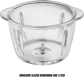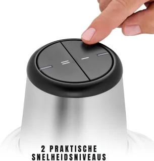 De Kult X Chopper-editie combineert een sterke motor (320 W) met gebruiksvriendelijke bediening. Kies uit 2 snelheden, gebruik de turbo-boost of werk in pulserende modus voor de perfecte textuur. Dankzij vier verwisselbare roestvrijstalen mesjes hak je gelijkmatig en snel — geen tranende ogen bij het snijden van uien en geen ongelijkmatige stukken meer.