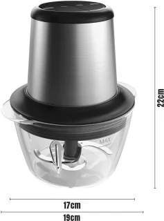 Met een inhoud van 1 liter en een compact formaat (22 x 16 x 20 cm) is deze groentesnijder ideaal voor dagelijkse maaltijden en mealprep. Het apparaat weegt slechts 1,69 kg en heeft een 2 meter lang snoer voor flexibele plaatsing in de keuken. De behuizing en het hakoppervlak zijn van roestvrij staal waardoor hij stevig en duurzaam is.